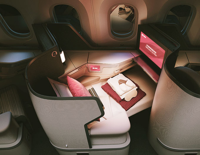 我們在787-9客機(jī)和A330-300客機(jī)的公務(wù)艙引入反魚骨式座椅, 并于2023年榮獲“SKYTRAX中國最佳公務(wù)艙”稱號,您可享受愜意舒展的機(jī)上空間。